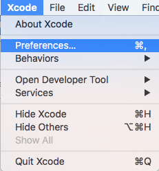 2. Buka Xcode, pilih Xcode Menu – Preferences.
