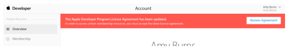 7. Log in ke dalam Apple Developer Center (https://developer.apple.com/) untuk menyetujui agreement yang baru.