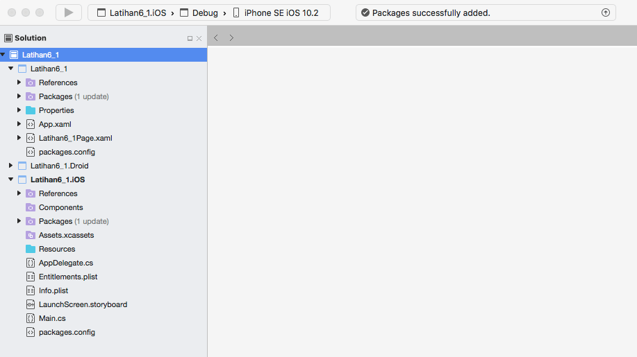 4. Tentukan lokasi dimana anda akan menyimpan project anda pada komputer Mac. Kemudian tekan tombol Create untuk membuat solution baru. Tampilan IDE Xamarin Studio for Mac dapat dilihat pada gambar dibawah ini.